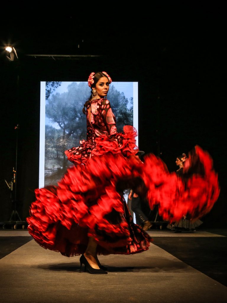 Y sin más dilación Cristina dio paso a la presentación de la colección ‘Mi gitanilla’, que destaca por la combinación de una gran variedad de tejidos, con el estilo propio de Revuelos. Como se pudo comprobar sobre la pasarela todos los diseños están muy trabajados, con líneas bastante marcadas y mezcla de volantes asimétricos y trajes muy cómodos, pensado para cualquier tipo de mujer, hombre, niña o niño. En esta ocasión las propuestas de Ubaldo fueron mostradas por Bibiana Miranda, miss Universo Huelva 2017, y Blanca Lora, miss World Huelva 2016, además de otras modelos, donde también se encontraban niños y niñas de la propia entidad rociera.