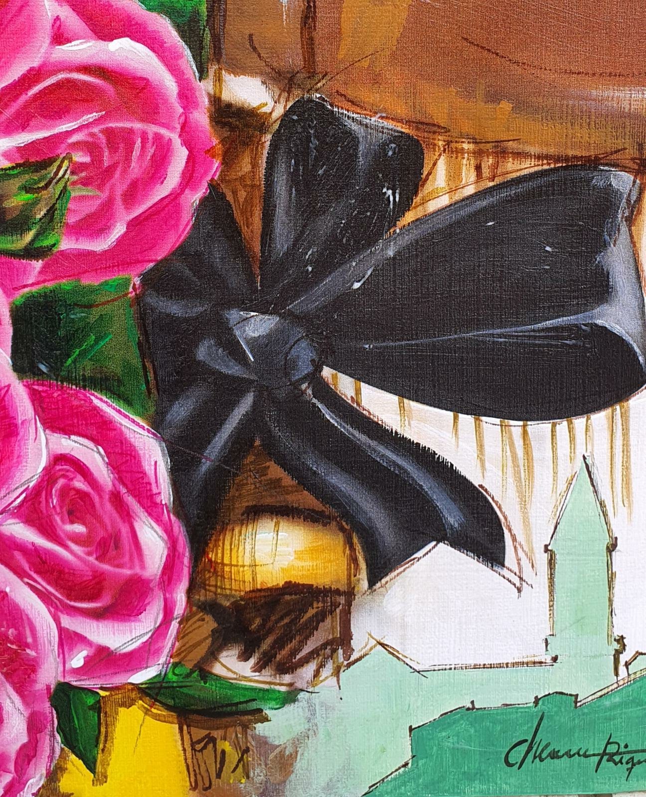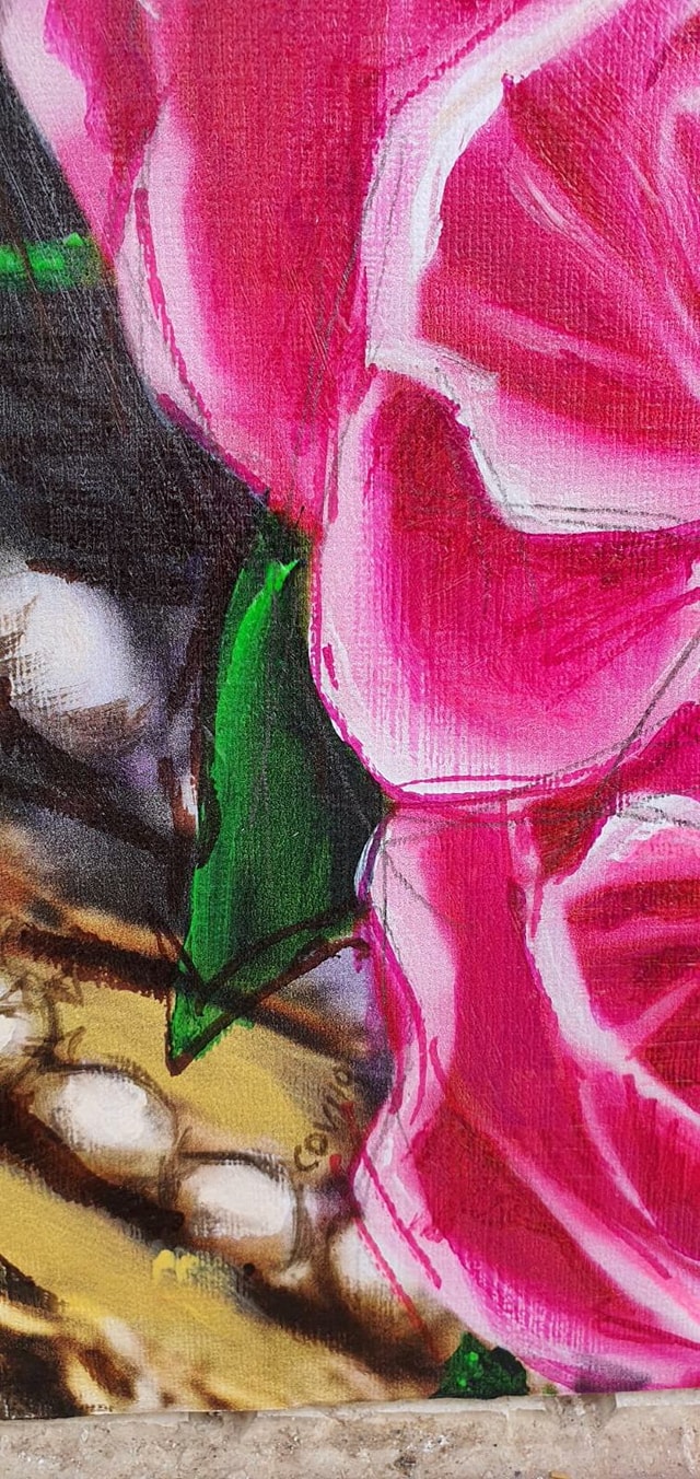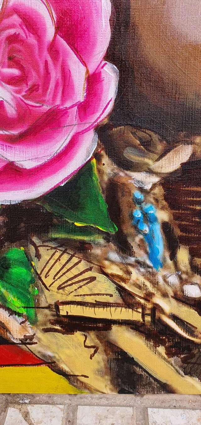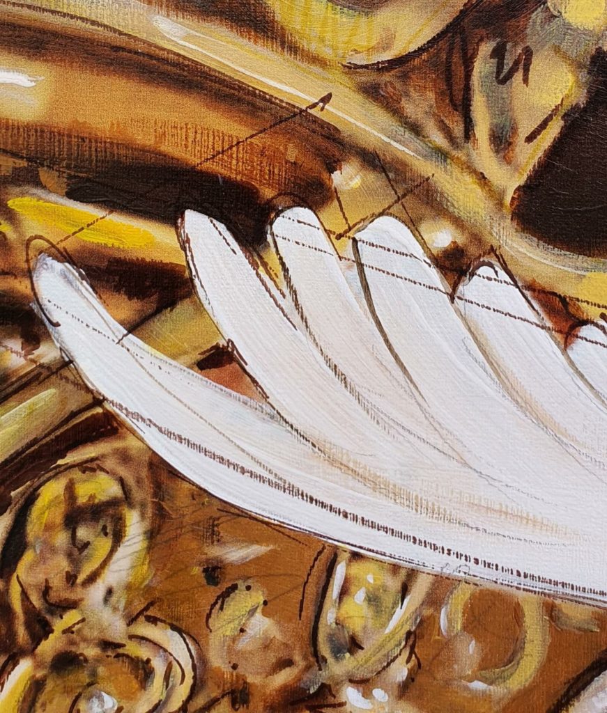 La pintura mide 90×70, es una técnica mixta sobre soporte rígido.