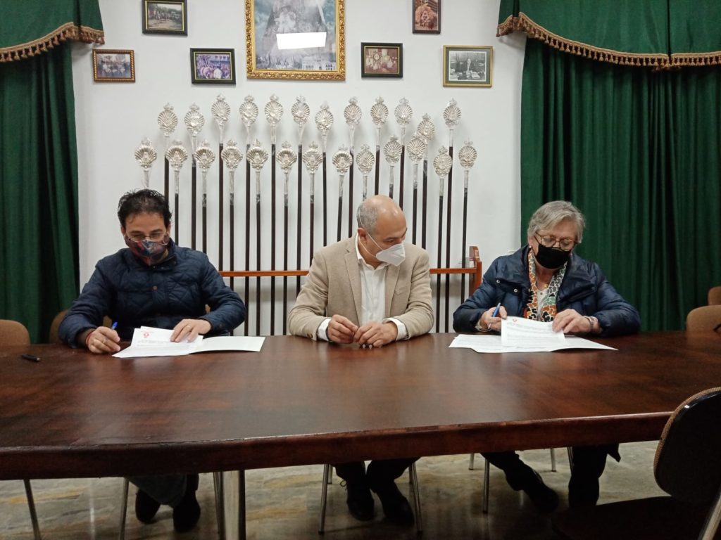 En un sencillo acto presidido por el presidente de la filial rociera del Paseo de la Glorieta, José Francisco Garrido, acompañado por la secretaria de su junta de gobierno, Mª Carmen Benito, y Chema Riquelme se rubricó el acuerdo adoptado.