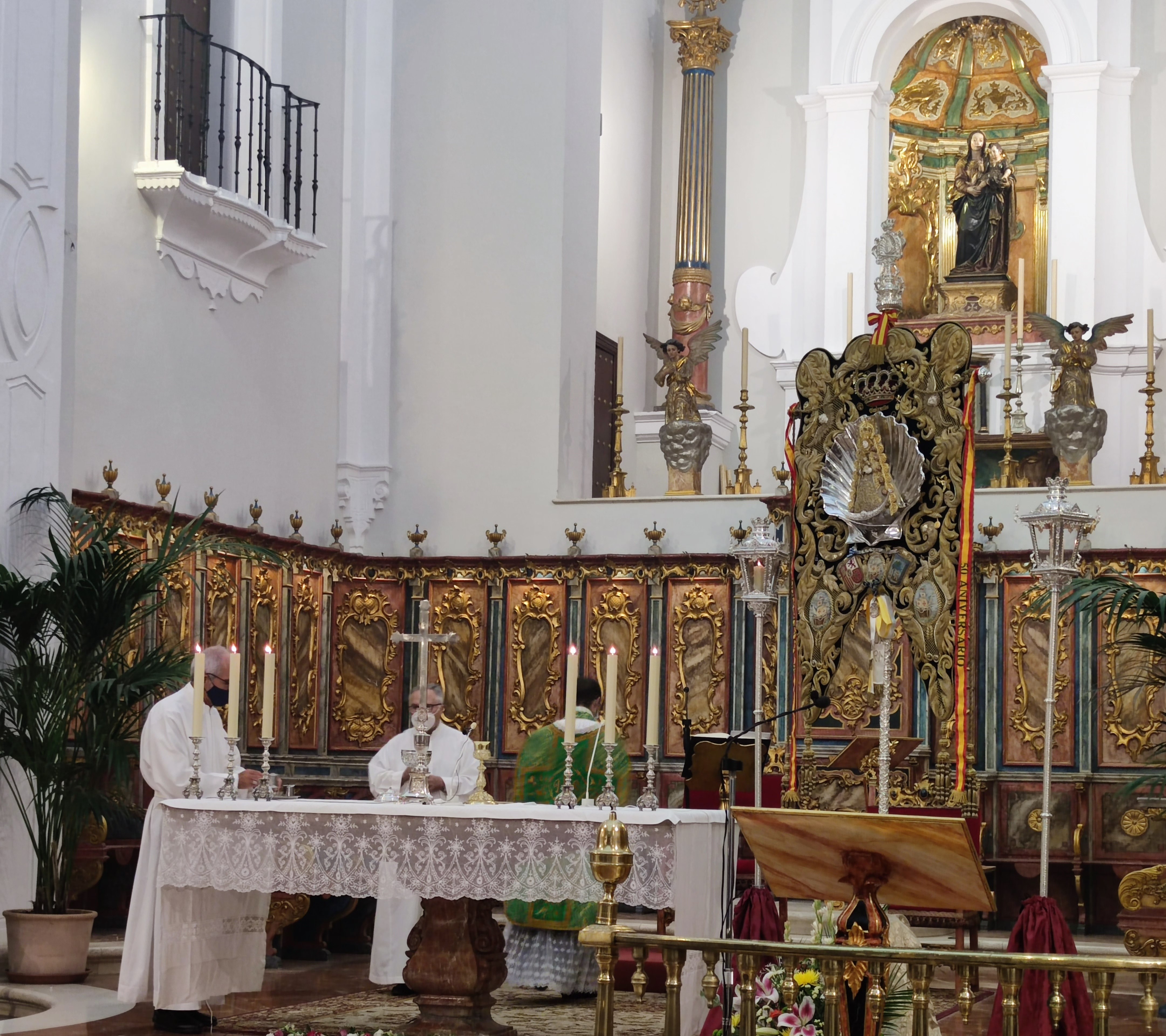 El jueves, 21, será el vicario episcopal del Condado, párroco de Almonte, rector del santuario de Nuestra Señora del Rocío y director espiritual de la Hermandad Matriz, quien oficie la Eucaristía con el acompañamiento musical también del Coro Joven de Emigrantes.