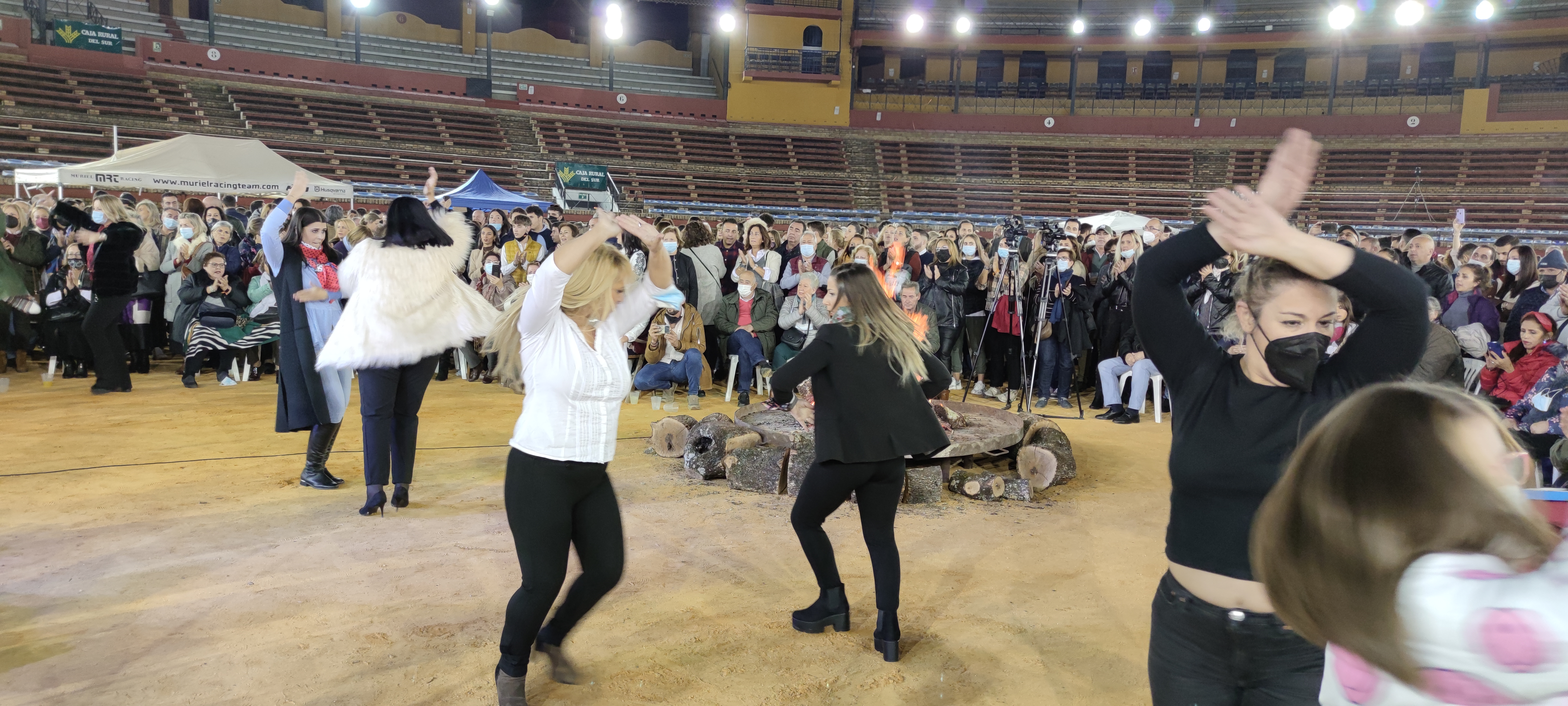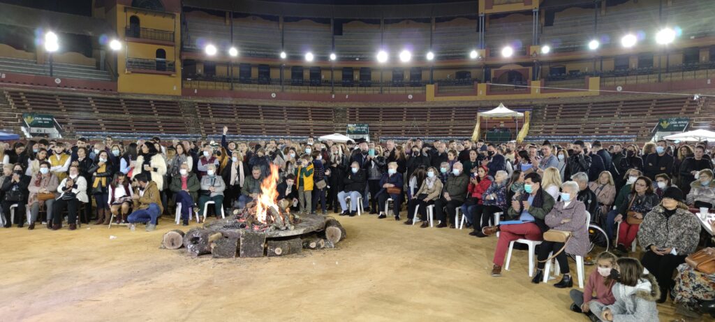 La Real Hermandad de Emigrantes de Nuestra Señora del Rocío de Huelva consiguió ayer congregar a un gran número de hermanos y devotos de la hermandad alrededor de la candela en el coso de La Merced en su zambomba, que este año se ha podido retomar y que estuvo presidida por la solidaridad y fraternidad.