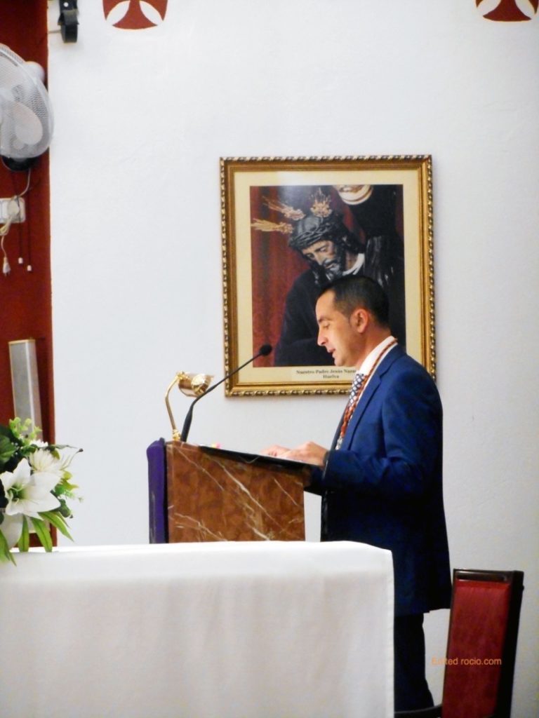 La noche comenzaba con el rezo del Angelus, dirigido por el vocal de Culto y Espiritualidad de la hermandad, José Antonio Gallardo, oración que tuvo como intención por el alma de la madre del vicetesorero Enrique Andivia, recientemente fallecida.
