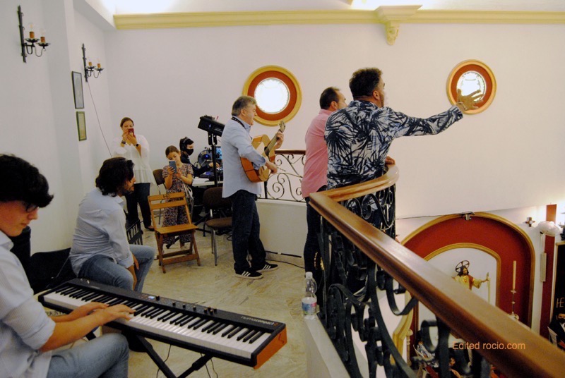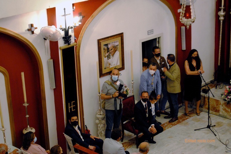 Abrió la exaltación José Manuel Barral, un experto en estos menesteres y, a su vez, director espiritual de Emigrantes, quien señalaría que “vamos a comenzar con una oración para que este acto lo hagamos siempre en la presencia de Señor y Nuestra Bendita Madre del Rocío”. A continuación, los miembros del grupo Onuba, que lleva regalando su arte más de 32 años por toda la geografía nacional e internacional, interpretaron sus primeras sevillanas compuestas por Tato Ramírez que llevan el atractivo título ‘Mi primavera Rocío’.