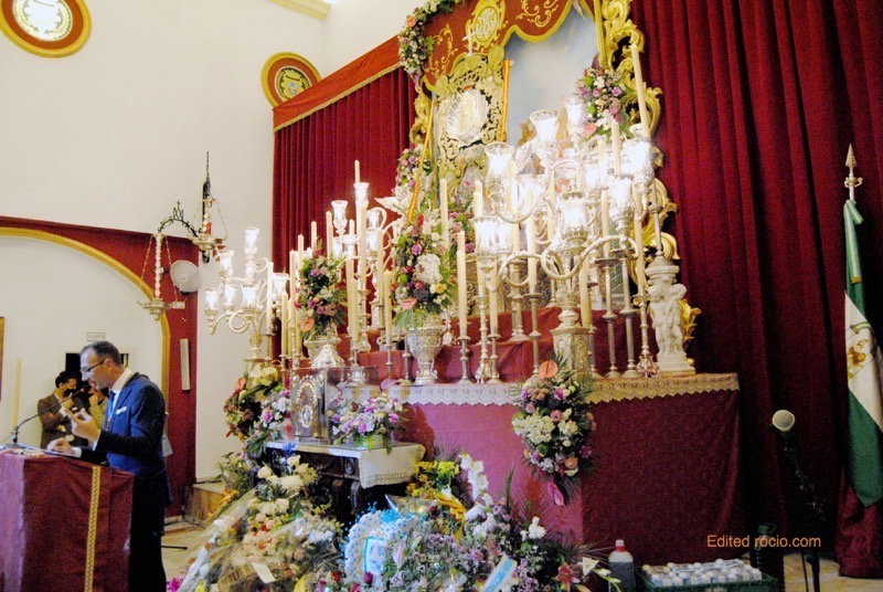 Seguiría manifestando que “no sé si es el destino o la concha de tu espalda. No sé si es tu dulzura la que me acerca a sus andas. No entiendo si es por la fuerza del rayo de tu mirada, del Niño de entre tus brazos o de la luz que desprende la hermosura de tu cara, del amor que te tenemos los que poseemos la suerte de sentirte en tu llamada. ¡No sé porque soy Emigrantes!, pero lo llevo en el alma, orgullo de un rociero por su concha plateada. La más bella entre las flores del jardín del emigrante del que tiene sangre roja y el que te reza por cantes queda atrás ya medio siglo que Huelva te contemplara de ese camino tan largo que en Alemania empezara.
