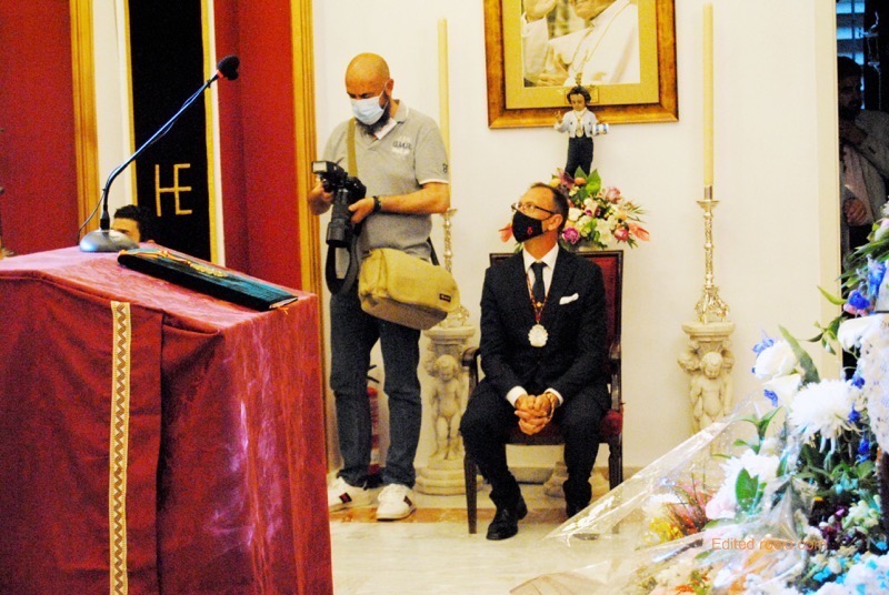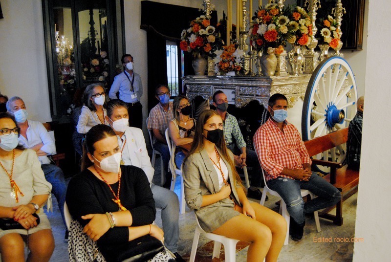 El alcalde de carreta reconocía que estamos viviendo momentos difícil pero pese a ello pidió a todos “ vamos a soñar todos… Soñemos con sones de tamboriles, gentío, color, mucho color en los alrededores, abramos esa puerta verde anunciando 50 años de vida de nuestra hermandad, demos la bienvenida a todos los que con ilusión se acercan a escuchar la Misa de romeros, una Misa que preside D. Manuel López Vega y ayudándole en la Eucaristía D. Eugenio Farelo, ambos con una gran sonrisa y mirando siempre de reojo a la Virgen, que llena y centra en el Simpecado.