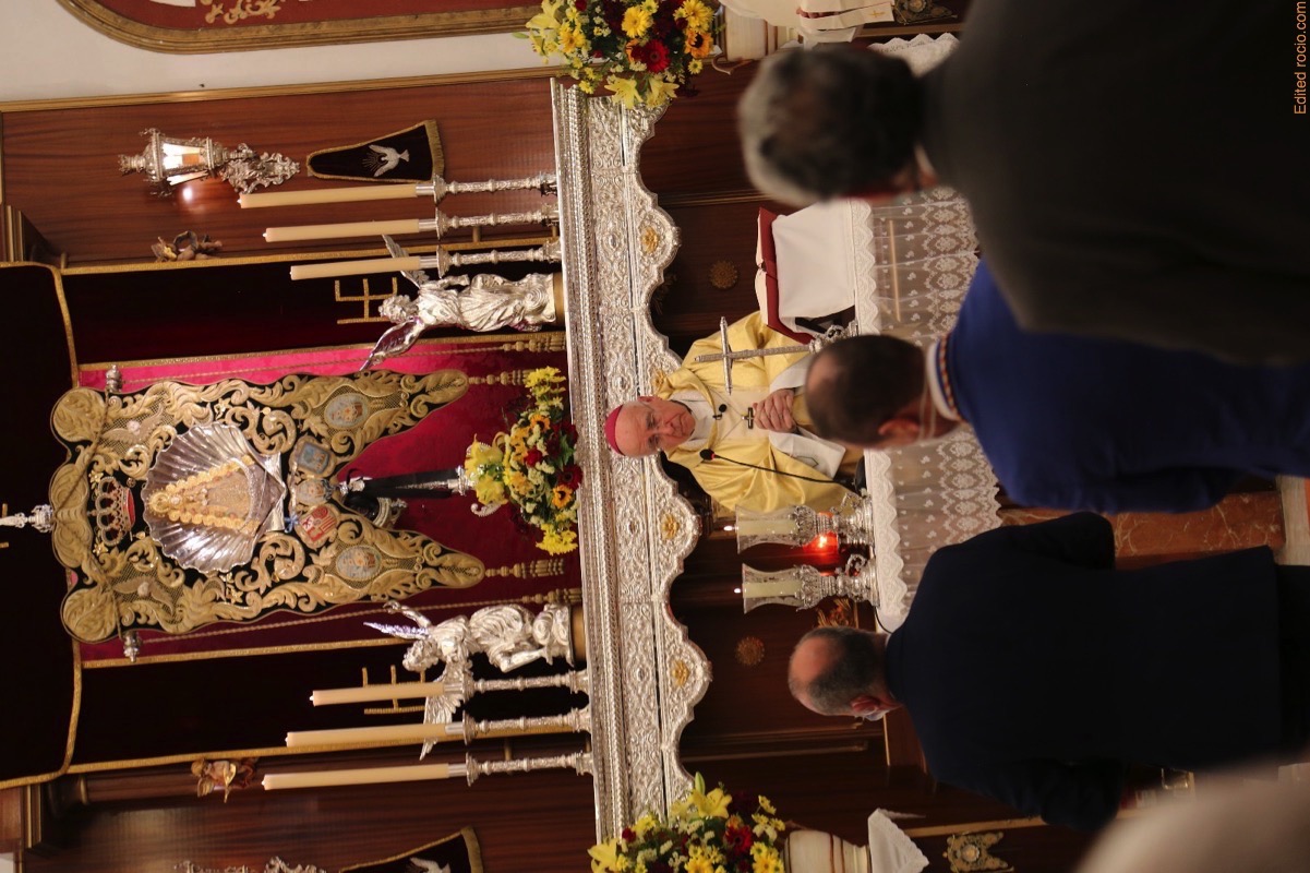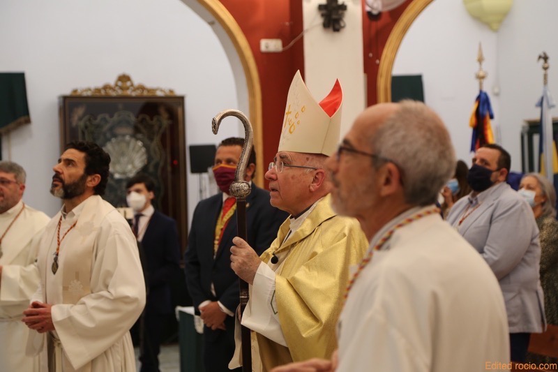 La función principal ha estado dedicada a los obispos, sacerdotes, religiosos, religiosas que han fallecidos por el Covid-19, por los que hoy se encuentran enfermo deseándole una pronta recuperación, así como por la recuperación del tesorero de la corporación rociera, Miguel Angel Sáenz de Sicilia, y el hermano Juan Manuel Reina.