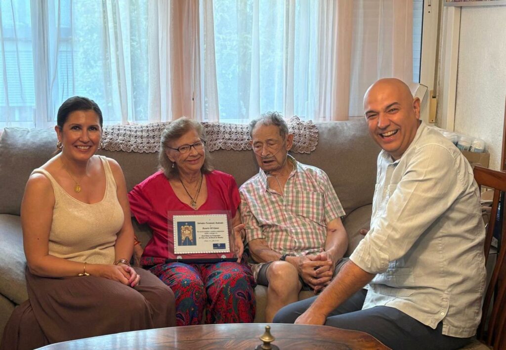 La Real Hermandad de Emigrantes del Rocío de Huelva, en colaboración con la empresa onubense Palparking, ha rendido un emotivo homenaje a los hermanos Salvador Fernández y Chari Gil, conocidos cariñosamente en la hermandad como ‘los yayos, en reconocimiento a su compromiso y entrega desinteresada a lo largo de más de cuatro décadas. El acto, que forma parte del programa de homenajes instaurado por la Hermandad durante su tradicional cena de Colombinas, no pudo celebrarse este año en la caseta debido a motivos de salud de los homenajeados. Por ello, la Junta de Gobierno y representantes de la empresa colaboradora se desplazaron hasta la casa familiar de Salvador y Chari para llevar a cabo este sentido reconocimiento en un ambiente cercano y familiar. Desde principios de los años 80, Salvador y Chari han sido un pilar fundamental dentro de la Hermandad. Su carácter colaborador, su generosidad constante y su profunda devoción a la Virgen del Rocío y a la Concha Peregrina de Emigrantes les han hecho merecedores de este homenaje. Son personas entrañables, queridas por todos, siempre dispuestas a participar activamente en cultos, actos y eventos de la Hermandad.