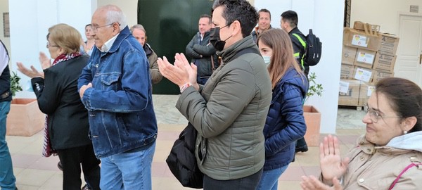 Francisco Garrido, presidente Emigrantes, decía esta mañana que “no tardó 24 horas de haber terminado las obras de la casa de hermandad cuando recibimos una llamada de teléfono para proponernos esta iniciativa. Parecía muy lejana y que había muchos obstáculos por medio, pero se ha hecho realidad y vamos a llevarle un poco de ilusión a gente que lo está pasando mal. El viaje va a ser difícil. Son muchos kilómetros los que tenéis por delante, pero el objetivo es importante. Seguro que la Concha Peregrina de Emigrantes os va acompañar a Domingo y Agustín y vamos a hacer un camino bueno con un fin mejor todavía”. La despedida terminaba en la capilla con el rezo de un Padre Nuestro y la Salve.