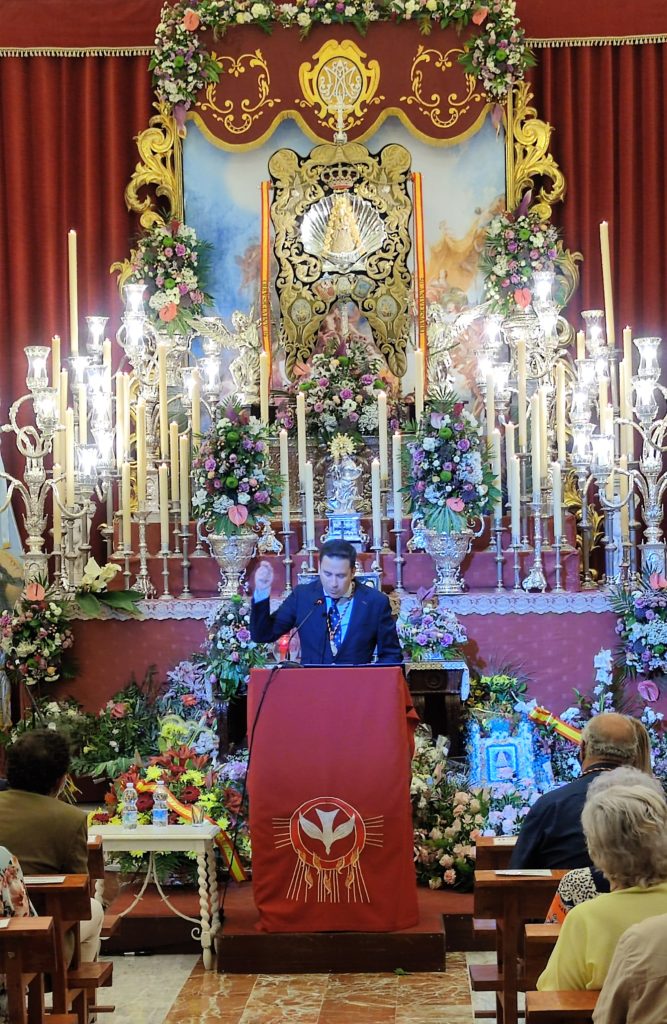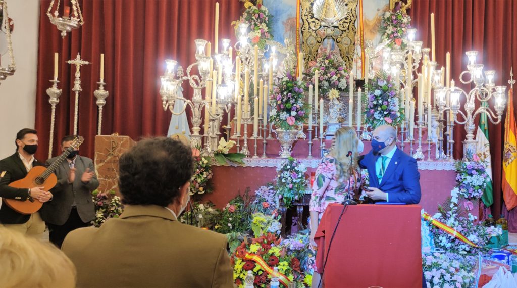 Seguidamente Molina iniciaría su mensaje con las siguientes palabras: “Dice que todos los días la mira y un suspiro se escapa mientras la sostiene en sus manos. Es la estampa que conserva de uno de sus primeros rocíos. Al lado, junto a su cama, otra foto de la Virgen en blanco y negro es la que vela sus sueños y a la que todas las noches le reza. En ella su padre está a los pies de la Virgen en el retablo antiguo de la ermita a la que tantas veces fue junto a su familia. Allí fue en el vientre de su madre y ante Ella fue con sus hijos y sus nietos para que fuera la luz en sus vidas. Desde que sus ojos se abrieran por primera vez jamás faltó al Rocío. De su cuello parte una cadenita de oro de la que cuelga una pequeña Virgen del Rocío que siempre llevaba su madre. Es la herencia del amor, la que se enseña sin más maestría que la de que tus hijos vean lo que tú quieres a la Virgen. Recuerda cómo iba en un camión con sus tíos, con animales vivos que después mataban en la romería para compartir con la familia y amigos la felicidad de estar en la aldea. Eran los tiempos sin frigoríficos ni neveras, donde sólo la ilusión podía con todas las crudezas de un camino que era de verdad y sin concesiones. Pero era el más feliz. Hoy ya ha conocido otro Rocío, ni mejor ni peor, como dice ella, simplemente distinto. No se queda con ninguno, porque siempre se queda con la Virgen. Todo tiene su encanto y el Rocío siempre se reinventa sin dejar la esencia escapar. Nada desentona, nada se va, por eso el Rocío será eterno. Ella, a su edad, guarda con celo el mismo afecto a la tradición y a las maneras de todo lo que tiene que ver con la Virgen. La ama, no concibe ni un minuto de su existencia sin ella. Lo es todo desde que vino a este mundo”.