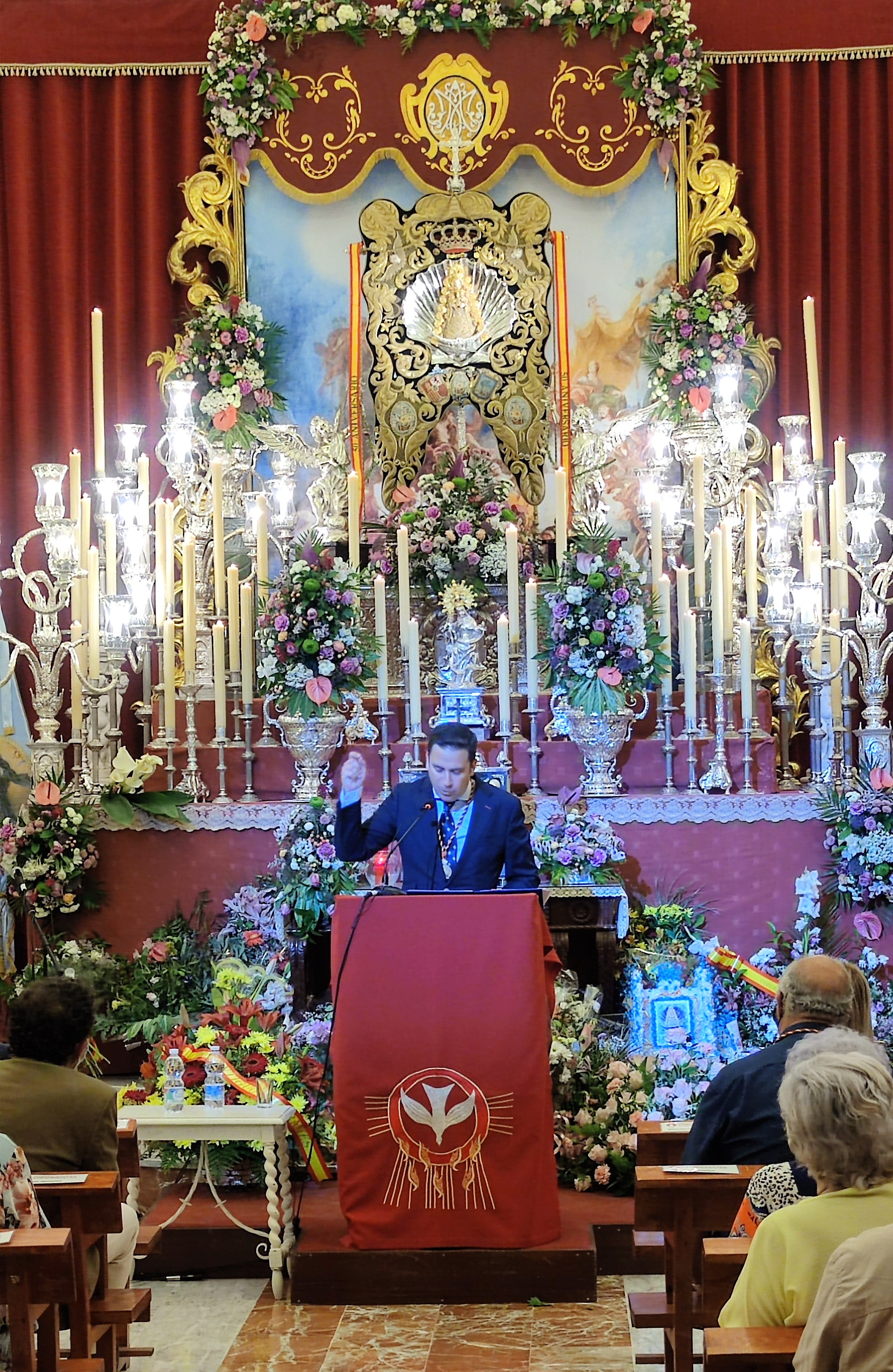 Iniciaría la hermosa velada el vocal de Cultos y Espiritualidad de la filial rociera, José Antonio Gallardo, quien dirigió un rezo para encomendar al exaltador y al grupo onubense Retama a la Santísima Virgen del Rocío.