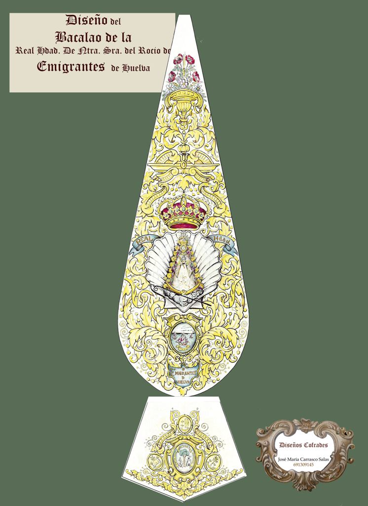 La capilla de la Real Hermandad de Emigrantes de Nuestra Señora del Rocío de Huelva se inundó de arte hasta cubrirla completamente con la presentación de los diseños de los nuevos guiones de la filial rociera creados por José María Carrasco Salas, la exaltación a cargo de José Antonio Hispano, hermano mayor de 2008, el cante hecho rezo de Geromo Segura, su hija Estrella y Alejandra.