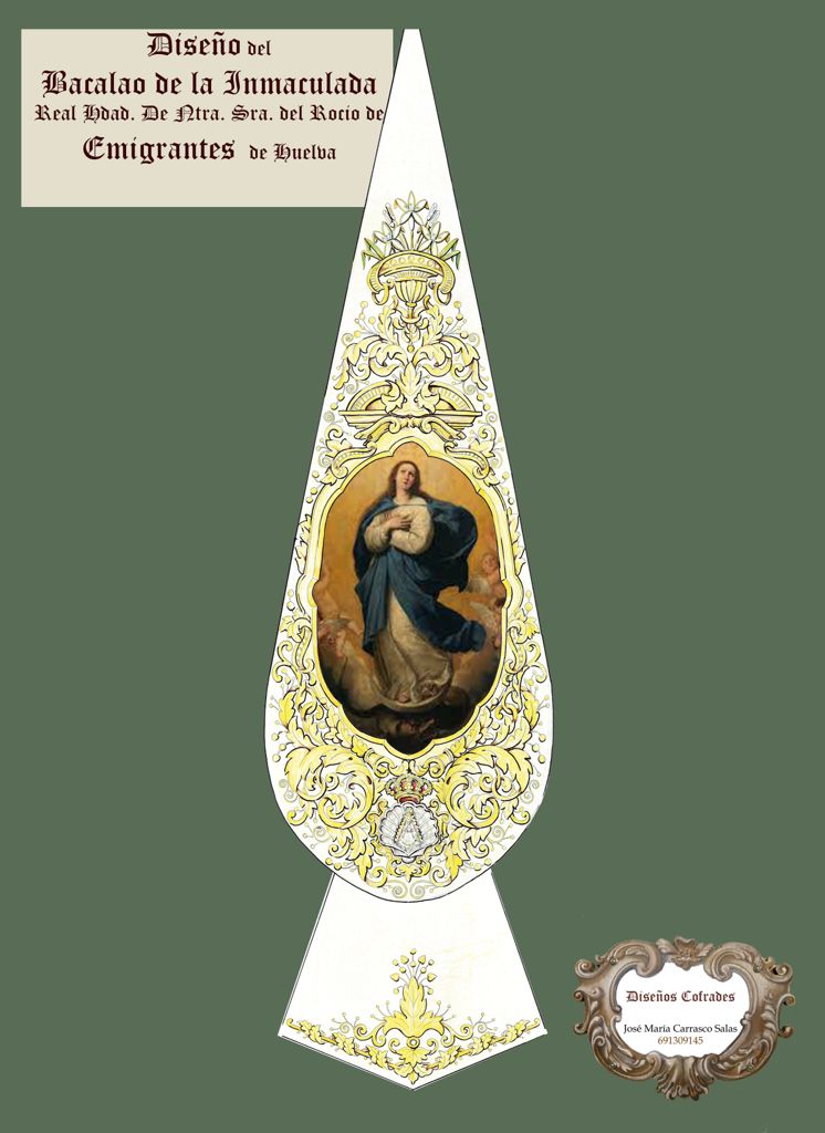 No olvidó a “el bueno de Matías Aceitón, al que tuve el honor de conocer, fue el encargado de dar forma a nuestro primer Simpecado, cuantas cosas aprendí de ti Matías y de tu hermana Antonia”. Seguiría más adelante manifestando que “cuando se decide hacer nuestro segundo Simpecado se decide que portara Concha Peregrina y Marinera. No podría haber mejor símbolo para describir nuestra forma de ser. Concha Marinera y Peregrina como nuestra Huelva. Eso sí, siempre manteniendo el verde. Verde como las marismas entre Huelva y Aljaraque, verde como la marisma de las madres de Doñana en primavera”.