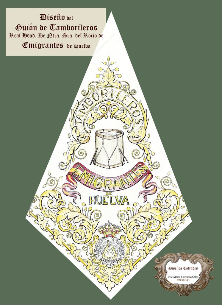 El presidente de Emigrantes, Francisco José Garrido, fue el encargado de abril el acto señalando el trabajo de la hermandad de “restauración y conservación de todo el legado de la filial rociera”, que se inició con la restauración y plateado de la carreta de nuestro Simpecado, posteriormente se ha llevado a cabo el plateado o dorado de todos los enseres de la hermandad, realizado por el orfebre Emilio Méndez. Y ayer conocimos los diseños realizado por el artista onubense José María Carrasco de los nuevos guiones de la entidad. Garrido manifestó que “este nuevo proyecto de la junta de gobierno de la que forma parte y de la cual se siente orgullo de pertenecer inicia hoy un proyecto para nuestra hermandad luzca con todo su esplendor por las calles de Huelva”
