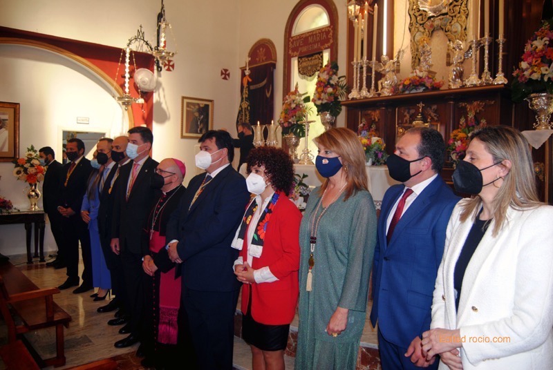 A esta celebración eucarística asistían el alcalde de Huelva, Gabriel Cruz; la presidenta de la Diputación Provincial, María Eugenia Limón; la presidenta de la Autoridad Portuaria de Huelva, Pilar Miranda; el alcalde de Aljaraque, David Toscano; teniente alcalde del Ayuntamiento de Huelva María Villadeamigo; presidentes de la Hermandad Matriz, Huelva y Emigrantes, así como los hermanos mayores de Huelva y Emigrantes, La Cinta, La Lanzada y del Nazareno.