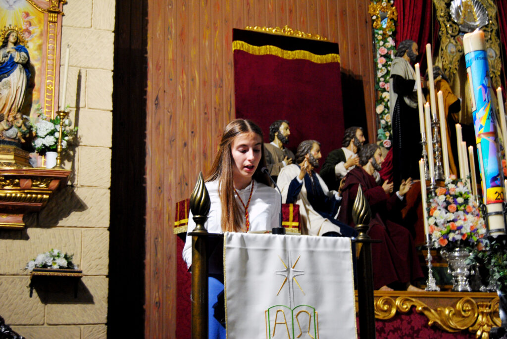 Al recibir el reconocimiento por su obra, Manuel Jesús Díaz Romero expresó su gratitud hacia la hermandad por la oportunidad brindada, destacando el honor de poder contribuir con su arte a la vivencia de la fe entre los jóvenes de Emigrantes.