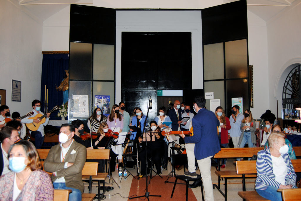 El coro joven de la filial rociera puso la parte musical a una noche muy emotiva, acompañado por el cuarteto de cuerdas de la Orquesta Colombina onubense. En su repertorio pudimos escuchar el canto de entrada ‘Rocío, una vez más con los míos’, ‘Ten piedad’, ‘Aleluya’, ‘Cordero divino’, ‘Salta la reja. Rocío de la mañana’, ‘De la viña trigo el trigo’, ‘Senderos’ y finalizando con nuestra ‘Salve de Emigrantes’
