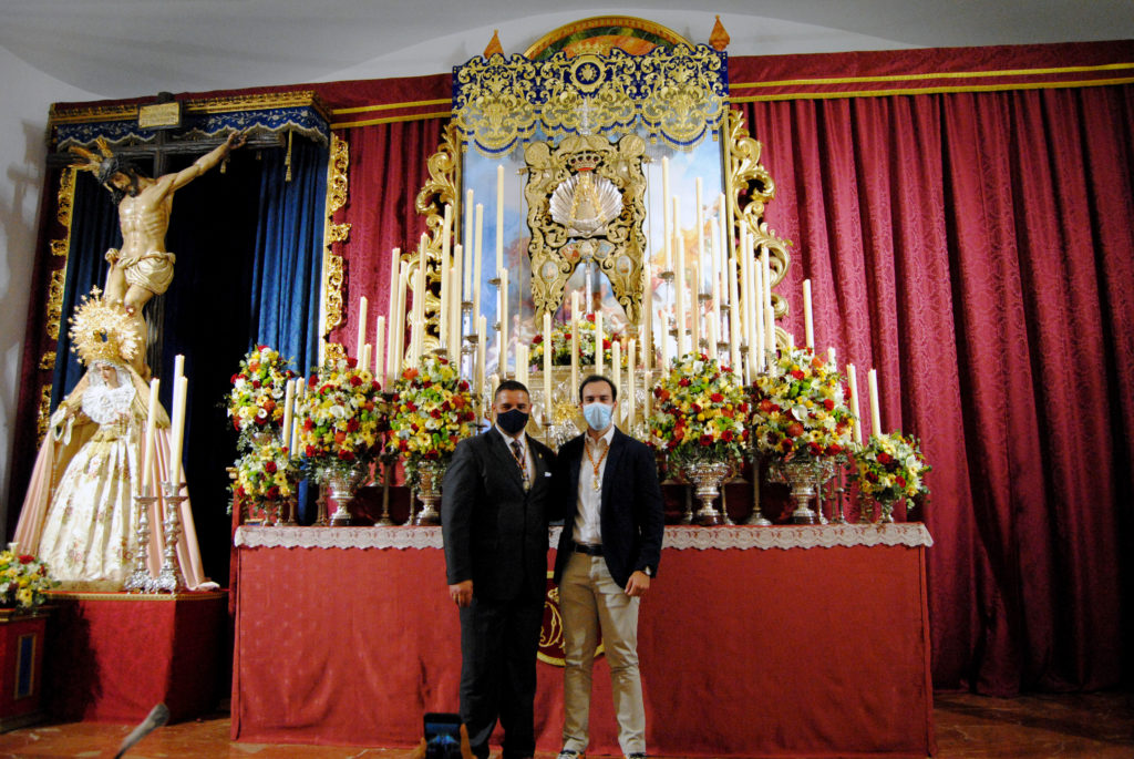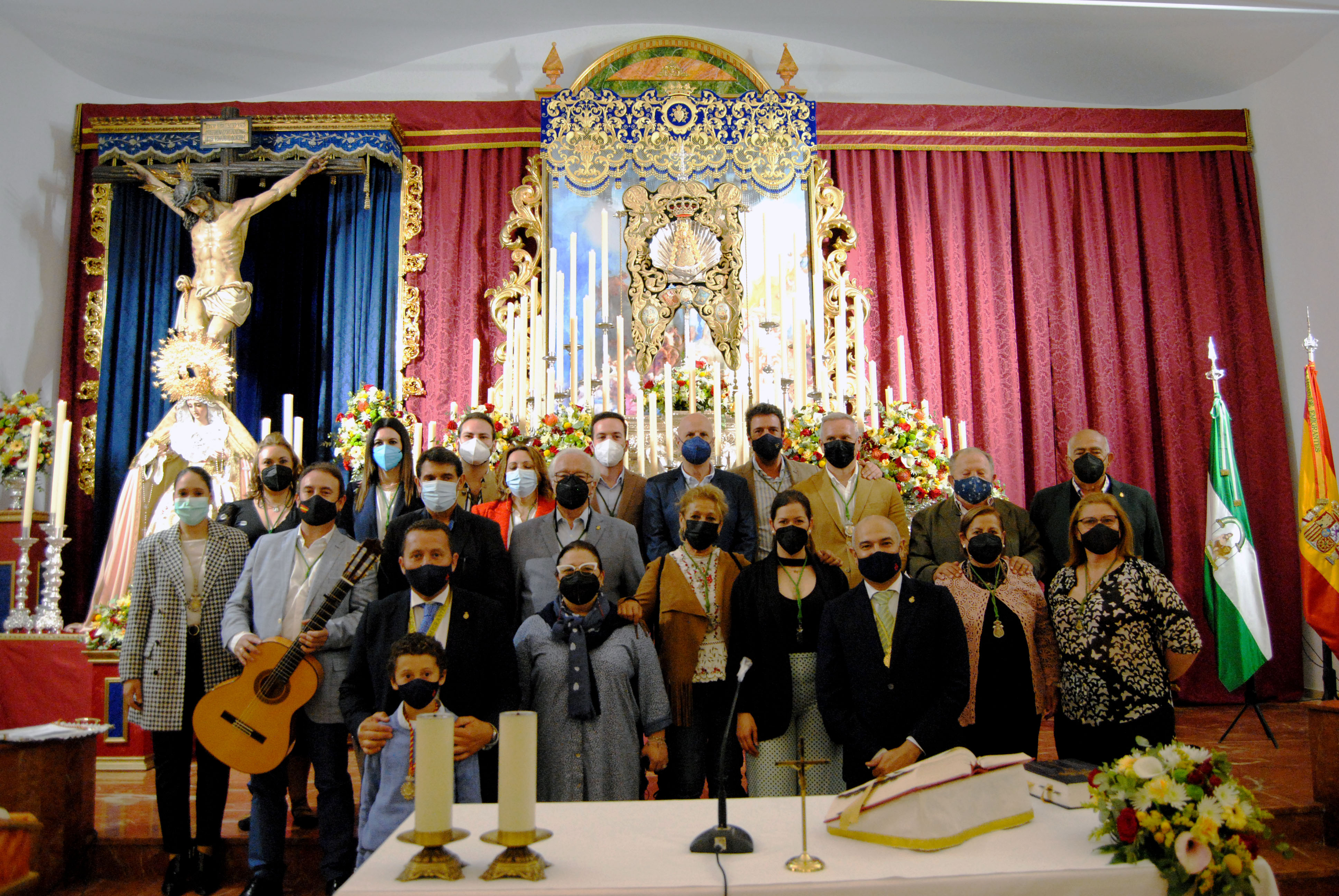 No olvidó al grupo de mayordomía, a las camaristas, a todos los hermanos que han hecho posible el montaje, que con tanto cariño y que tanto tiempo se han llevado trabajando y pensando, a todo el grupo de prensa (Mariola, Álvaro, Carmelo, Julio y Antonio), grupo de tamborileros, coro joven, antiguo y el coro oficial de nuestra hermandad.