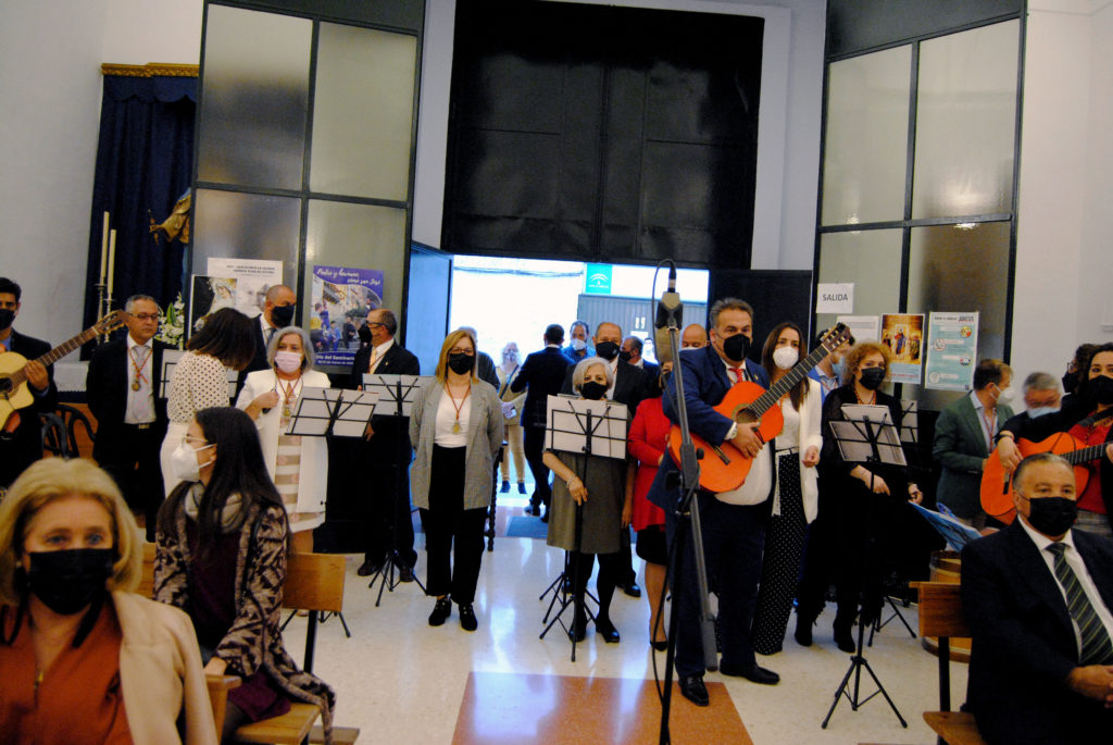 La Real Hermandad de Emigrantes de Nuestra Señora del Rocío de Huelva volvió a vivir anoche, segunda jornada de sus cultos preparatorios de Pentecostés 2021, en la iglesia de los Dolores, una noche para la historia y los anales de esta cincuentenaria filial rociera. La llegada de taxis a las puertas del templo, el barullo que se formaba cada vez que bajaba alguien de los mismos, el sonido de la flauta y tamboril, … hacían presagiar que íbamos a vivir momentos únicos y así fue. El presidente de la Hermandad de Emigrantes, Francisco José Garrido, manifestaba que “para mí, personalmente, la palabra hermandad ha cobrado un sentido muy especial. He visto a muchísimas personas que tenía muchísimas ganas de ver con nuestro Simpecado. He visto a un grupo de hermanos mayores que cuando he ido saludándolos nos hemos emocionado”. Decía que “he estado toda la misa con los pelos de punta recordando a mi amigo, que ya no está entre nosotros. Su coro nos ha hecho vivir y recordar momentos maravillosos a todos los que sentimos y amamos a Emigrantes”. José Antonio Ortiz, hermano mayor, señalaba “qué gusto ver la iglesia de Los Dolores a los más antiguos, a los que conocéis la hermandad. A hermanos mayores tan antiguos, que tanto habéis hecho por esta hermandad, por esta Concha Peregrina. Hoy tengo la suerte de estar aquí con esta medalla plateá con mi coro, porque es mi coro. Hoy no ha habido una guitarra, Raúl. Hoy ha habido dos guitarras. La tuya y la de Joseli Carrión que ha bajado del cielo para estar entre nosotros”.