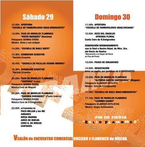 El apartado musical estará protagonizado estos días por Onuba, Estero, Raquel Morey, Plaza Menor, Cantares y pinares, Paco Millán, Andares, Brisa Marina, Aires de Huelva, Coro de la Hermandad de Huelva, Coro De La Hdad Del Rocio De Emigrantes Huelva y su grupo joven, y Regina Mundi.
