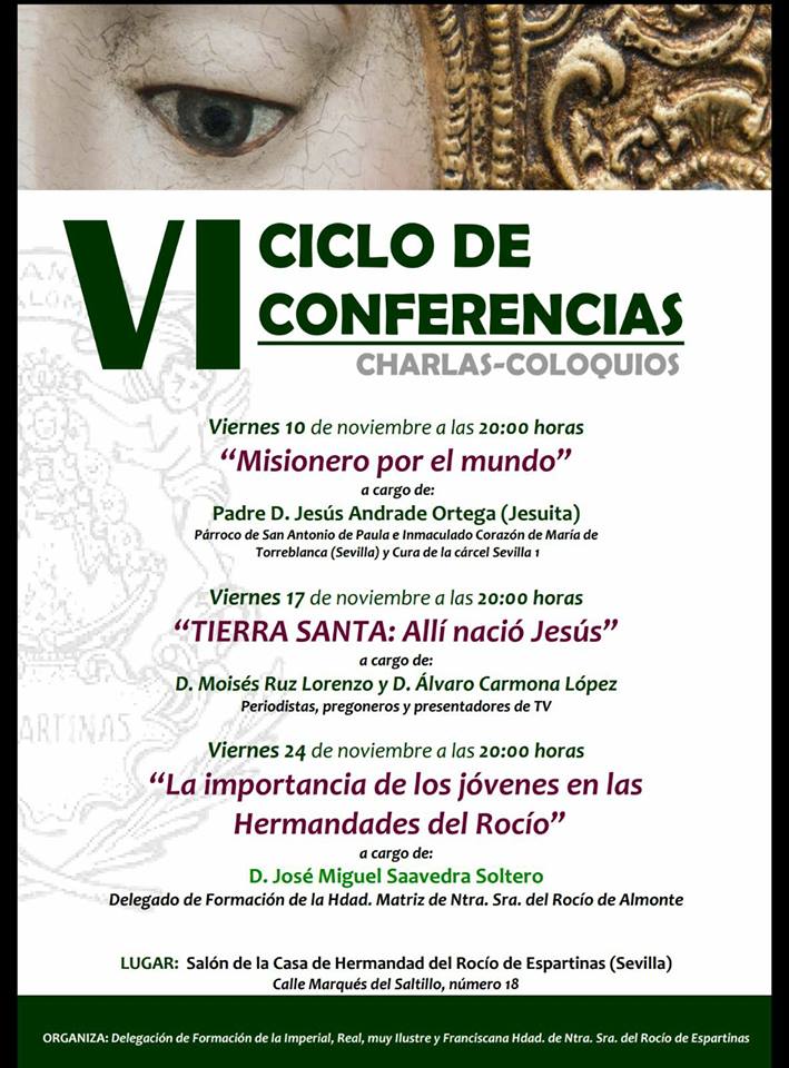 La Hermandad de Espartinas organiza un Ciclo de Conferencias  los días 10,17 y 24 de noviembre de 2017