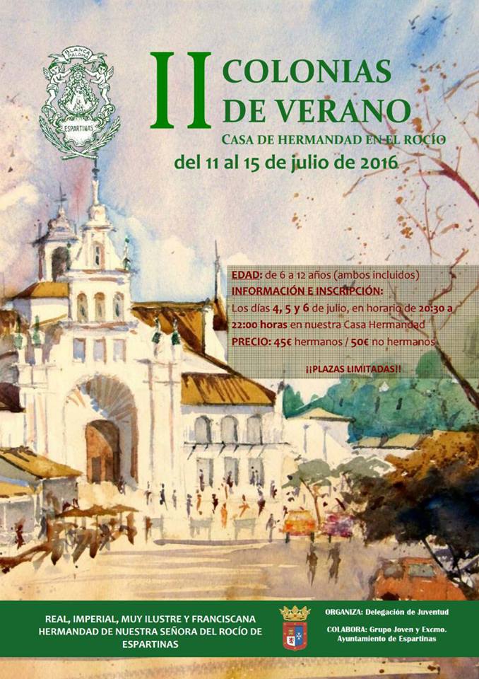 Nuestra Hermandad organiza las II Colonias de Verano, destinadas a niños entre 6 y 12 años. Se celebrarán en la casa de hermandad en El Rocío, del 11 al 15 de julio. La inscripción será del 4 al 6 de julio.