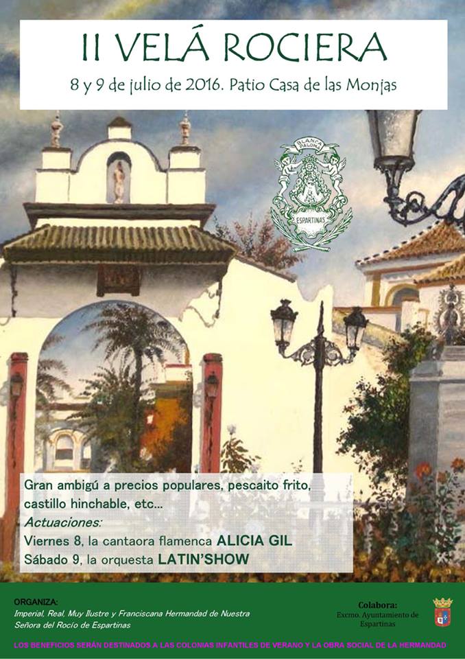 La Hermandad de Espartinas organiza la II Velá Rociera, que se celebra el próximo fin de semana en el patio de la Casa de las Monjas. Ambigú a precios populares, pescaíto frito, castillo hinchable… y buen ambiente rociero.