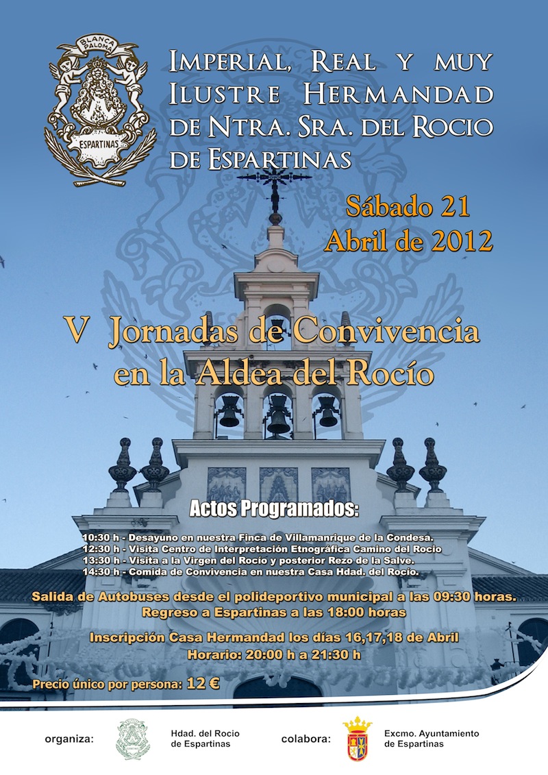 La Imperial, Real y Muy Ilustre Hermandad de Nuestra Señora del Rocío de Espartinas, informa: El próximo sábado día 21 de Abril se celebra la V Jornada de Convivencia en la Aldea del Rocío.