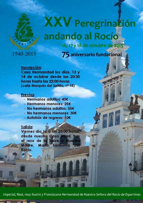 La Hermandad de Espartinas organiza la XXV Peregrinación andando al Rocío 2015 en su 75 aniversario fundacional.