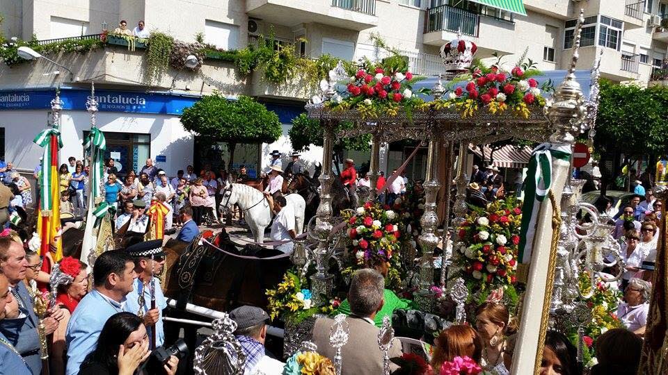 La Hdad. de Estepona tras celebrar la Misa de Romero a las 10:00 horas en la Parroquia de San José ha iniciado su camino hacia la Blanca Paloma.