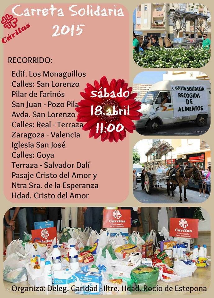 La Hermandad de Estepona organiza la Carreta Solidaria el próximo 18 de abril de 2015 a las 11 horas.