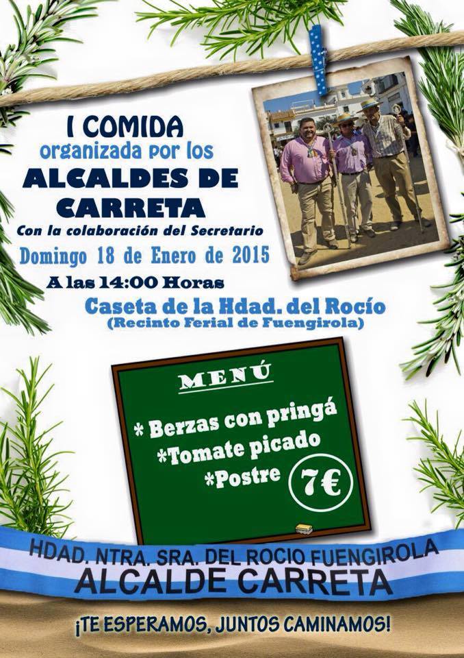 Organizada por los Alcaldes de Carreta con la colaboración del Secretario se celebrará el próximo 18 de enero de 2014 la I comida de los Alcaldes de Carreta en la Caseta de la Hdad. del Recinto Ferial de Fuengirola.