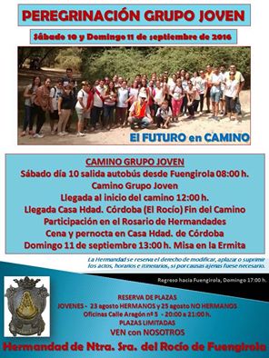 Hermandad de Fuengirola  organiza la Peregrinación del Grupo Joven para los días 10 y 11 de septiembre de 2016
