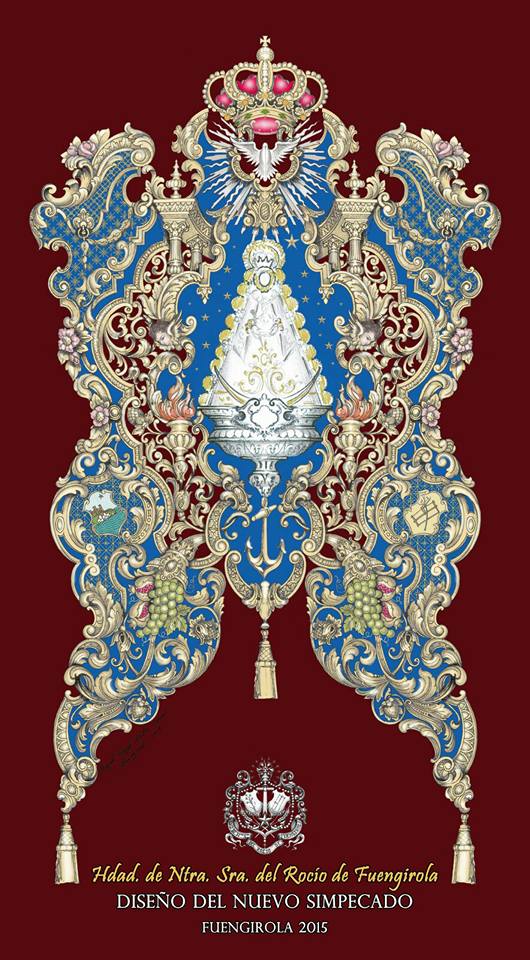 Proyecto de diseño del Nuevo Simpecado Hermandad del Rocío de Fuengirola, realizado por D. Miguel Ángel Martín Cuevas y que será bordado en los Talleres de Manuel Mendoza (Málaga).