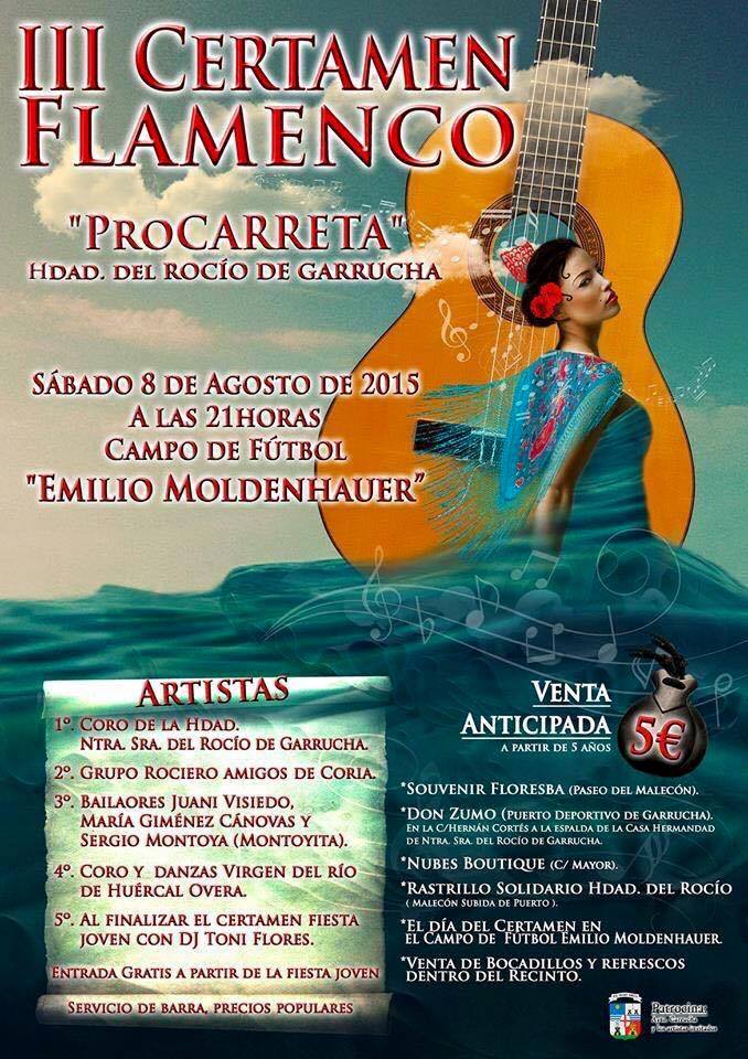 La Hermandad de Garrucha organiza el  III Certamen Flamenco el sábado 8 de agosto de 2015 «Pro Carreta del Simpecado».