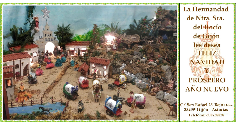 La Junta de Gobierno de la Hermandad de nuestra Señora del Rocío de Gijón, les desea una Feliz Navidad y un próspero año 2018.