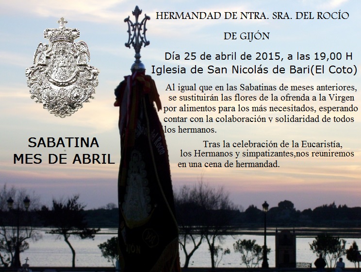 La Hermandad de Gijón celebra su Sabatina en la iglesia de san Nicolás de Bari el próximo día 25 de abril de 2015.