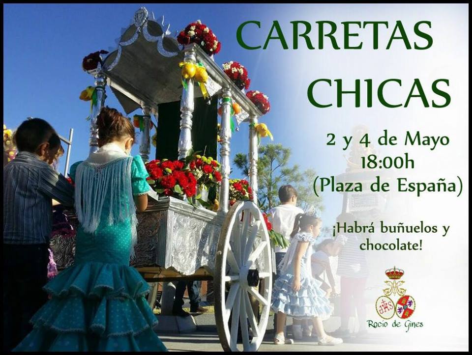 Queremos que los más pequeños se impregnen del espíritu rociero como cada año, por eso las carretas chicas volverán a recorrer las calles del pueblo el próximo miércoles 2 y viernes 4 de mayo a las 18.00 horas. Os esperamos en la plaza de España donde además podréis merendar chocolate y buñuelos.