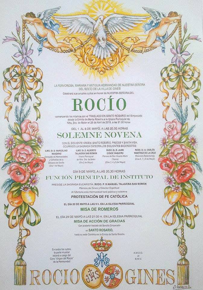 La Hermandad de Gines celebrará Solemne novena durante los días 1 al 9 de mayo de 2015.