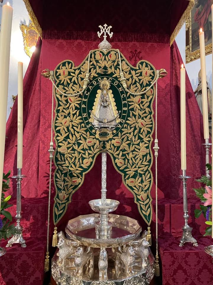 Hoy hemos sido hermanos que se han acercado a estar con Nuestra Santísima Madre, reunidos en la forma en la que podemos, junto a nuestro Simpecado, rezando en una preciosa Eucaristía.