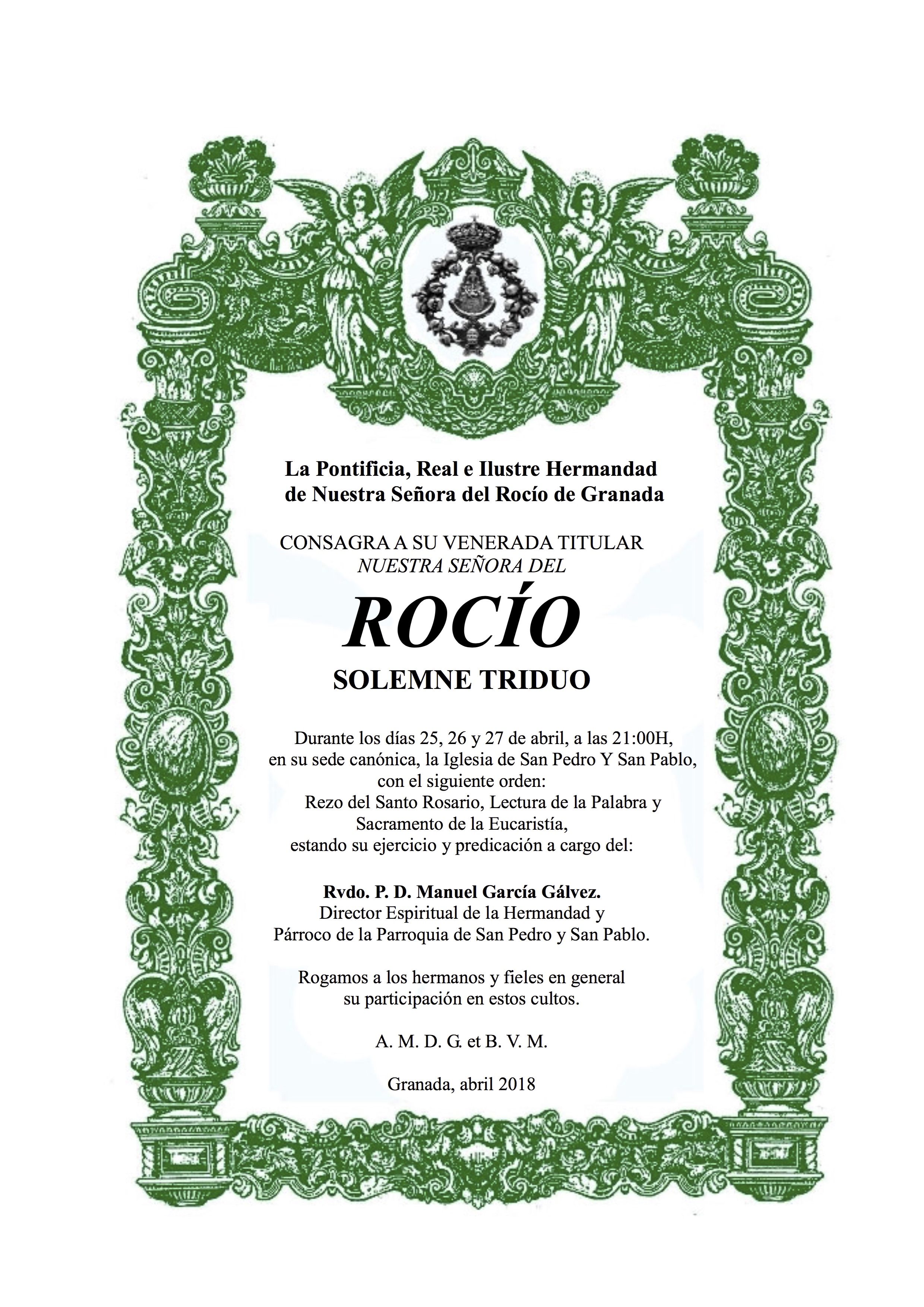 Hermandad de Granada – Solemne Triduo y Pregón del Rocío a cargo de D. Luis Bernal Sánchez