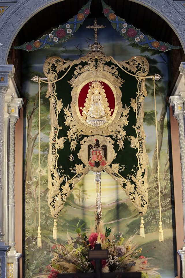 El Simpecado que tenemos actualmente al culto en nuestra capilla, fue realizado por las RR.MM. Adoratrices de nuestra capital en 1964, por encargo y donación del hermano mayor de aquel año, Manuel Garrido Garrido.