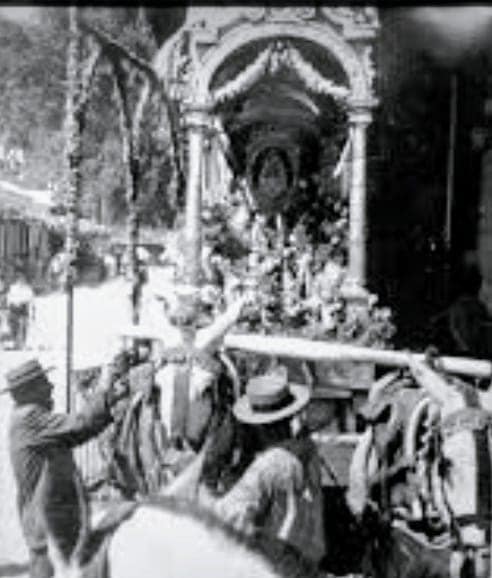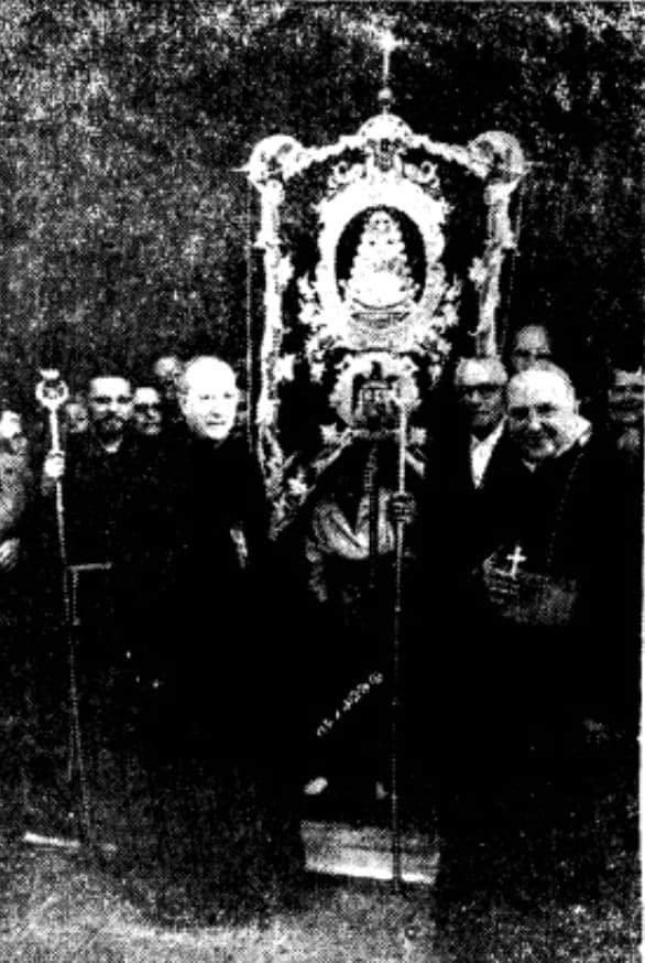 FOTOGRAFÍAS: Juan Canterla, archivo de la Hermandad y Foto Rodri. En ella aparecen el obispo de Huelva, Cantero Cuadrado junto al obispo García Lahiguera (entonces obispo auxiliar de Madrid) en el día de salida del Simpecado hacia El Rocío.