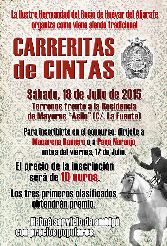La Hermandad de Huevar organiza este sábado, 18 de julio la tradicional Carrerita de Cintas en los terrenos frente a la Residencia de ancianos en c/ La Fuente.