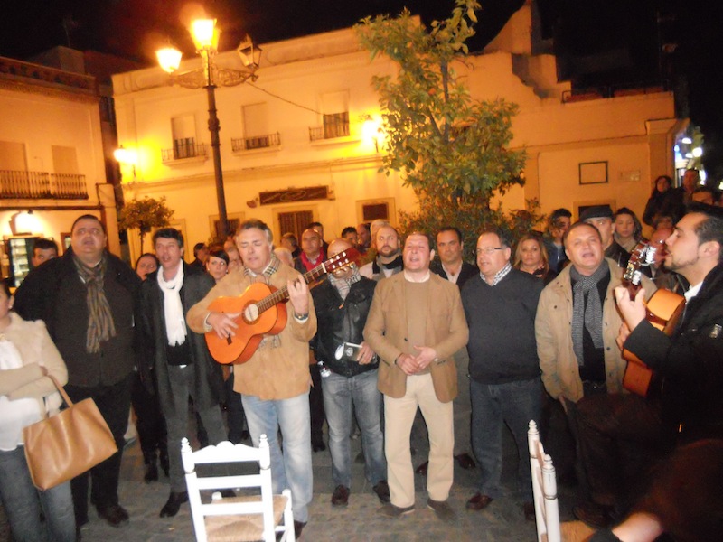 Y… "como manda la tradición", a las doce de la noche se apagaron las luces de la Casa Hermandad, se escucharon los toques de campana y, a la luz de las velas que alumbran el Simpecado, comenzó ese maravilloso cantautor del mundo rociero, Paco Millán, a dar las primeras notas de la Salve de Huelva acompañado de un grupo de hermanos de la Hermandad y haciendo que el numerosísimo público que se congregó tanto dentro de la Casa Hermandad como en la Plaza de San Francisco, rompieran el silencio con una fuerte ovación. Porque esa noche, Paco Millán con la Salve y las sevillanas con las que se arrancó, consiguió, como él mismo manifestó, "empaparse el alma de Sensaciones" y transmitió a todos y a todas los que nos encontrábamos allí la intensidad y vivencias de un camino, el sueño de una noche bajo las estrellas, la satisfacción de llegar a la Rocina, la alegría de presentarse ante Ella, la ansiedad del lunes por tener a la Señora frente al Simpecado y la paz interior de un camino de vuelta. De todo esto consiguió que nos empapáramos.