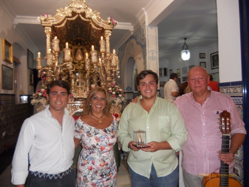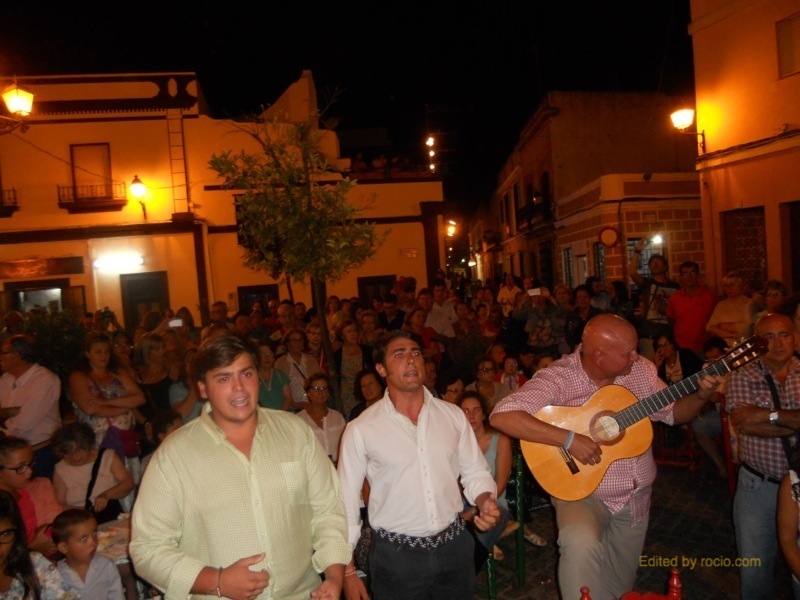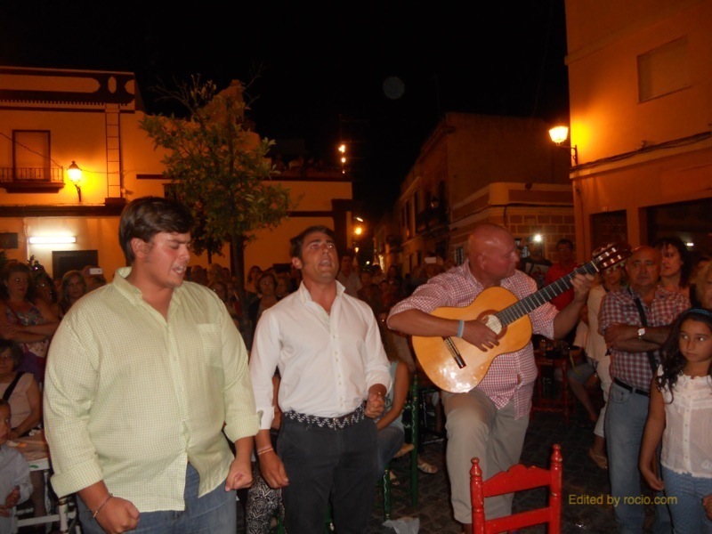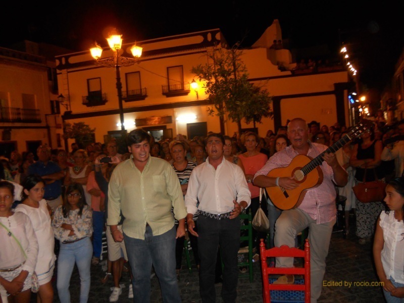 Jsé Manuel Vélez Rodríguez a la guitarra y Alberto Casado Gutiérrez y José Manuel Vélez Padilla que forman el Grupo "Calle Moguer" de Huelva dejaron una semillita en la Hermandad no sólo con la Salve sino, también, con las sevillanas que hicieron especialmente para esa noche y que recogía el sentimiento cristiano y rociero que nos inunda a todo el que se pone delante de Ella. Sin duda alguna, un grupo con el que esperamos contar en más ocasiones porque, como dijeron muchos de los allí presentes, supieron a poco.