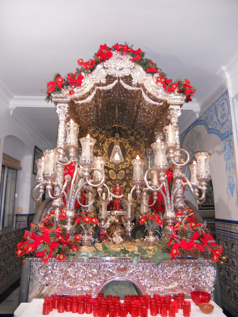Cuando el pasado viernes día 6 de diciembre las puertas de la Casa Hermandad del Rocío de Isla Cristina abrieron sus puertas se pudo contemplar la Carreta con su nueva puesta de flores de Navidad. Realmente una estampa maravillosa cuando, además, a los pies del Simpecado, se ha colocado el nacimiento que nos anuncia los hermosos días que a los cristianos nos quedan para celebrar la venida del Niño Dios.