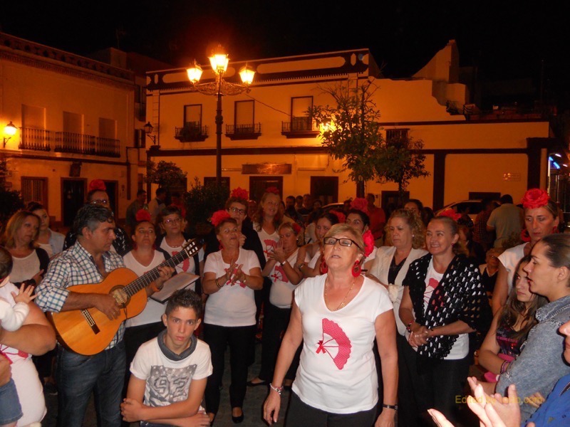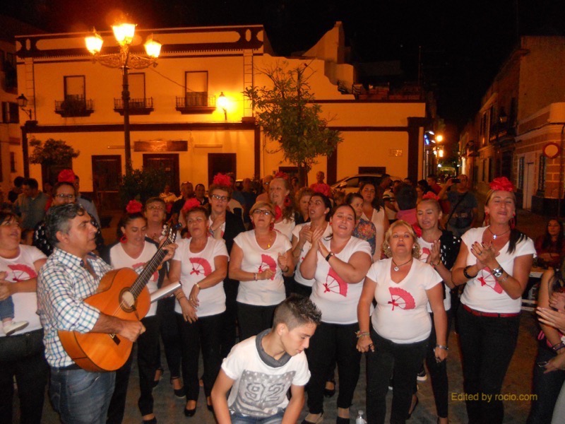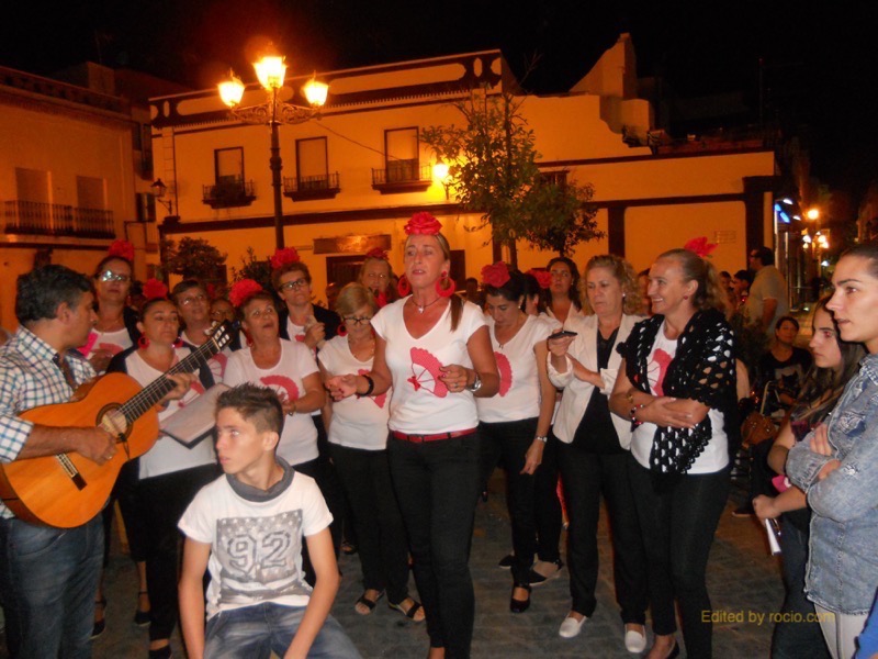 Muy grato el ratito que el Coro del Centro ARATI de Isla Cristina hizo pasar a todos los que se congregaron el pasado viernes 24 de Octubre a las puertas de la Casa Hermandad del Rocío cuando, después de la presentación, comenzaron a cantar una hermosa Plegaria a la Virgen del Rocío, de cuya letra y música es autora la Directora del Coro, Noemí. Porque todas y cada una de las integrantes del Coro participan en el Centro Arati desde distintas áreas. Centro que desde sus inicios está llevando a cabo una importantísima y hermosa labor, ayudando a rehabilitar a personas que están pasando un situación especial en sus vidas. Y es por ello que la Hermandad se alegra muchísimo cuando este grupo de personas, acompañadas a la guitarra por Juan Antonio Orta, participan de la convivencia que reina en la Casa cada viernes que se abren las puertas para el canto de la Salve.