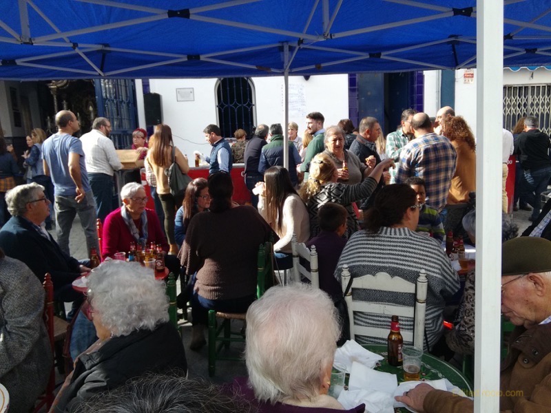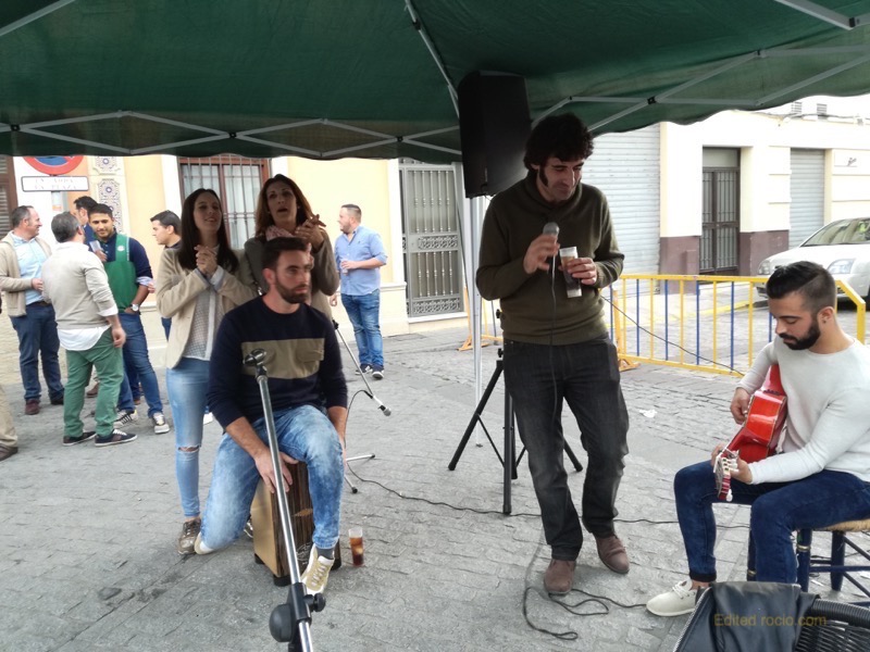 Así, se pudieron degustar distintos platos de comida que hicieron las delicias de todos los asistentes que fueron aumentando en número conforme la tarde avanzaba, máxime cuando comenzaron a sonar, en directo, sevillanas, rumbas, etc.., que se encargó de dirigir la Hermana Mayor, Laura Reina acompañada a la guitarra por Migue Gómez y al que luego se unieron otros cantando como dos concursantes del programa «Yo soy del sur» de Canal Sur Televisión.
