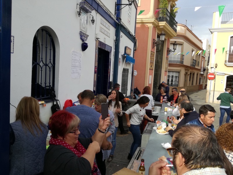 A las puertas de la Casa Hermandad del Rocío de Isla Cristina se congregaron un numeroso gentío de rocieros para disfrutar, en la Plazoleta San Francisco, de la «Garbanzá» anunciada y organizada por las Hermanas Mayores de la Romería 2018, Laura Reina y Rosa María Martín.