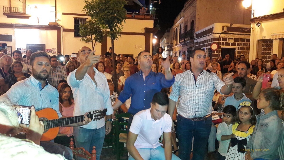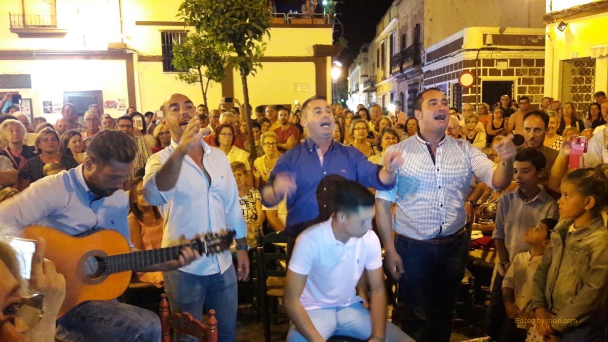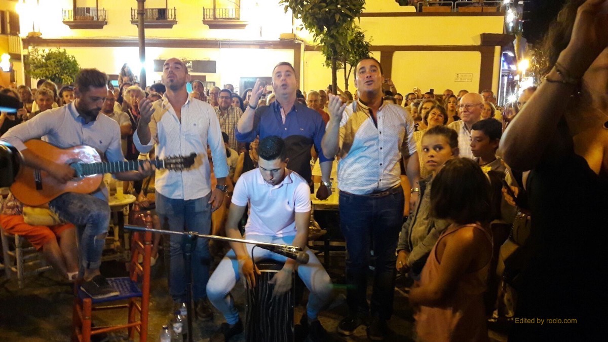 Sí, con la palabra expectación no se puede definir mejor lo que se formó en la Plaza de San Francisco, a las puertas de la Casa Hermandad del Rocío de Isla Cristina, al estar anunciado que el Grupo «Kalandraque» era el encargado de cantar la Salve al Simpecado el pasado viernes 11 de agosto. Y, sin duda, es porque este grupo de amigos, formado por Tomás con la guitarra, Yeray con el cajón y las voces de Abel, Diego y Francisco José, rompen de una forma espectacular el silencio con oraciones cantadas, haciendo que nos transportemos a los caminos, a las marismas y, sobre todo, al lado de la Señora. Porque ya no es sólo por el sentimiento y por las hermosas voces que forman para alabar a la Madre de Dios con la Salve…. sino, también, por esas maravillosas letras cantadas en forma de sevillanas, inéditas, con las que siempre consiguen dar un fuerte pellizco a los corazones y a las almas de los buenos rocieros. Por todo ello, una vez más, agradecemos al Grupo «Kalandraque» esa forma de ser sencilla que tienen y que saben transmitir y contagiar por la intensidad con la que manifiestan el Amor incondicional hacia la Patrona de Almonte.